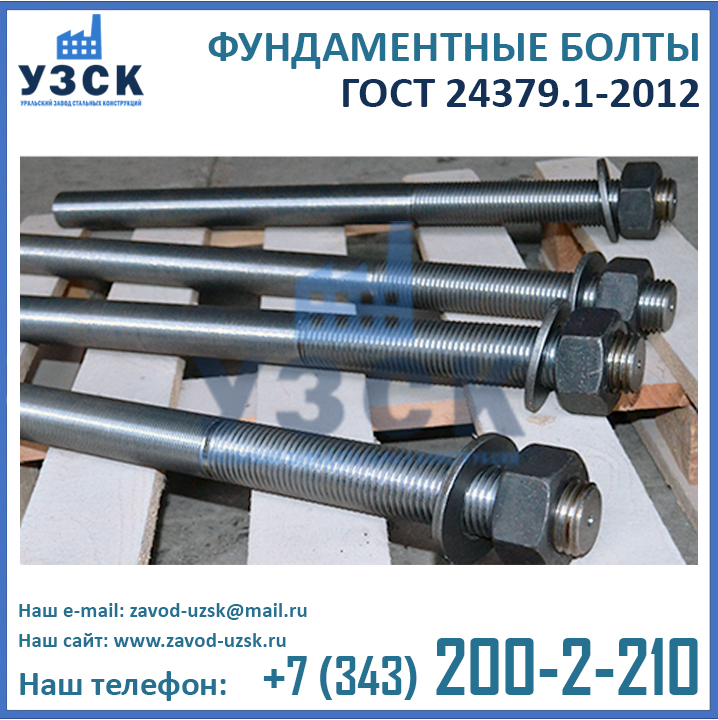 Приобретая болты ГОСТ 24379.1-2012 напрямую у завода-изготовителя вы не переплачиваете многочисленным посредникам. Кроме того, при обширных объемах закупки завод УЗСК предлагает скидки на анкерные болты М 12, М 16, М 20, М 24, М 30, М 36, М 42, М 48, М 52, М 56, М 64, М 72, М 80 и М 90.