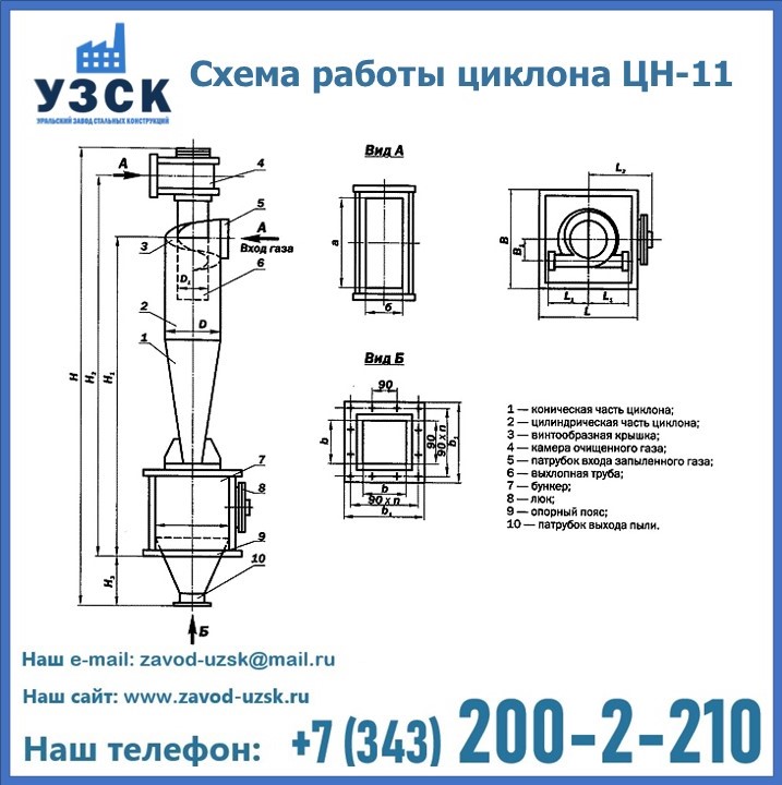 При этом ощутимой разницы в цене между универсальным и узконаправленным, подобранным в соответствии с конкретными техническими требованиями циклоном, нет. Стоимость воздухоочистительного оборудования типа циклон обусловлена маркой и толщиной стали, из которого он изготовлен, сложностью и специфичностью конструкции, наличием дополнительного оснащения (бункер, улитка и другие). При необходимости, на заводе УЗСК в Первоуральске будет изготовлен циклон по индивидуальным техническим чертежам заказчика.