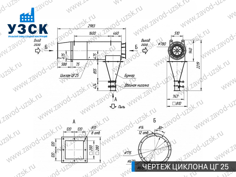 Монтаж циклона-искрогасителя ЦГ должен осуществляться непосредственно к горизонтальному вентиляционному каналу на входе в систему фильтрации и аспирации. Заказать изготовление по индивидуальному техзаданию или купить готовый циклон-искрогаситель ЦГ на заводе УЗСК в Первоуральске можно, оставив заявку прямо на сайте или позвонив по указанному телефону, уточнив все детали касательно продажи оборудования.