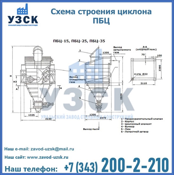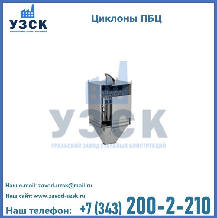 Завод «УЗСК» в Первоуральске предлагает приобрести циклоны ПБЦ и прочие устройства, полностью укомплектованные и готовые к эксплуатации. Мы гарантируем соответствие оборудования всем требованиям ГОСТ и ТУ, износостойкость и высокую производительность предлагаемого оборудования. Уральский Завод Стальных Конструкций изготавливает и продает надежное, эффективное и производительное оборудование, имеющее длительную гарантию и большой эксплуатационный ресурс. Если требуется изготовить циклон нестандартных размеров, то такой вариант выполнения заказа тоже предусмотрен, так как предприятие имеет собственные производственные площади и надежных поставщиков. На все поставляемое или производимое оборудование имеются чертежи и прочая техническая документация. Заказать и купить циклоны или прочее оборудование высокого качества и по доступной цене можно через наш сайт или по указанному в разделе «Контакты» телефону.