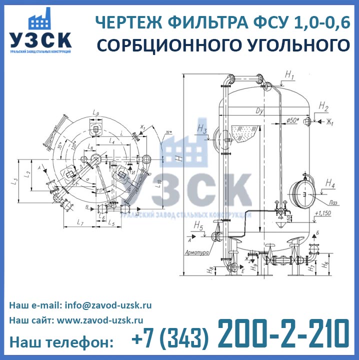 Наш завод (Уральский завод стальных конструкций) является производителем угольных фильтров, сам осуществляет изготовление и реализацию выпускаемой продукции. Приобретая фильтры ФСУ-1.0-0.6 в Первоуральске от производителя, Вы приобретаете оборудование без наценок всевозможных посредников, а также значительно экономите свое время. Фильтры ФСУ1.0-0.6 завода УЗСК – это гарантия качества, кратчайшие сроки изготовления и цена, которая Вам понравится.