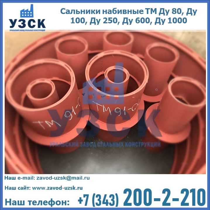 На производственных площадях Уральского Завода Стальных Конструкций в Первоуральске профессиональные сотрудники занимаются проектированием и разработкой различных закладных деталей, в частности осуществляется производство и реализация набивных и нажимных сальников. Все изделия, которые можно приобрести у нас, отвечают установленным требованиям по ГОСТу, а также прочей нормативной документации.